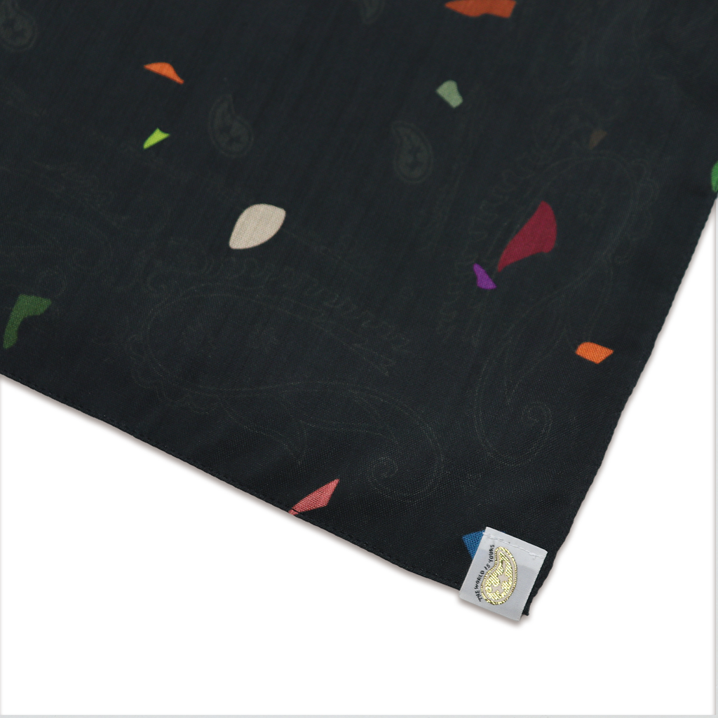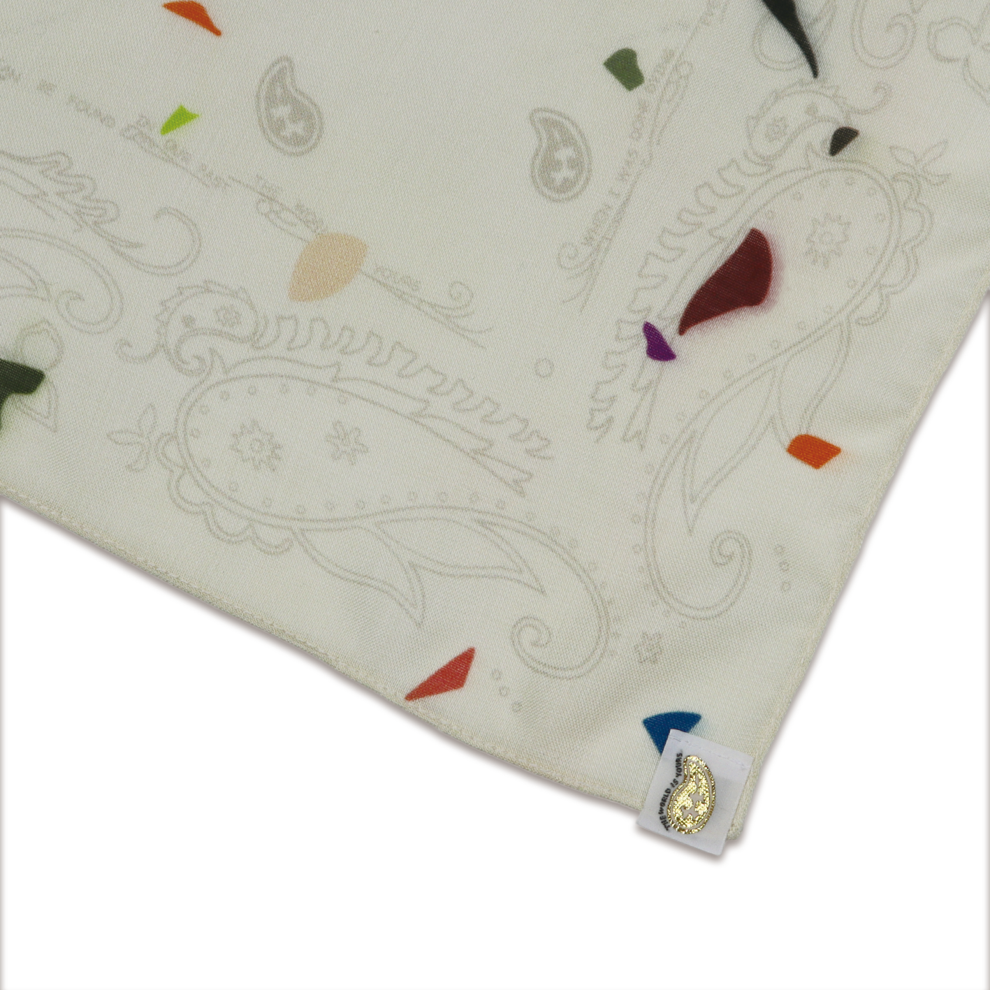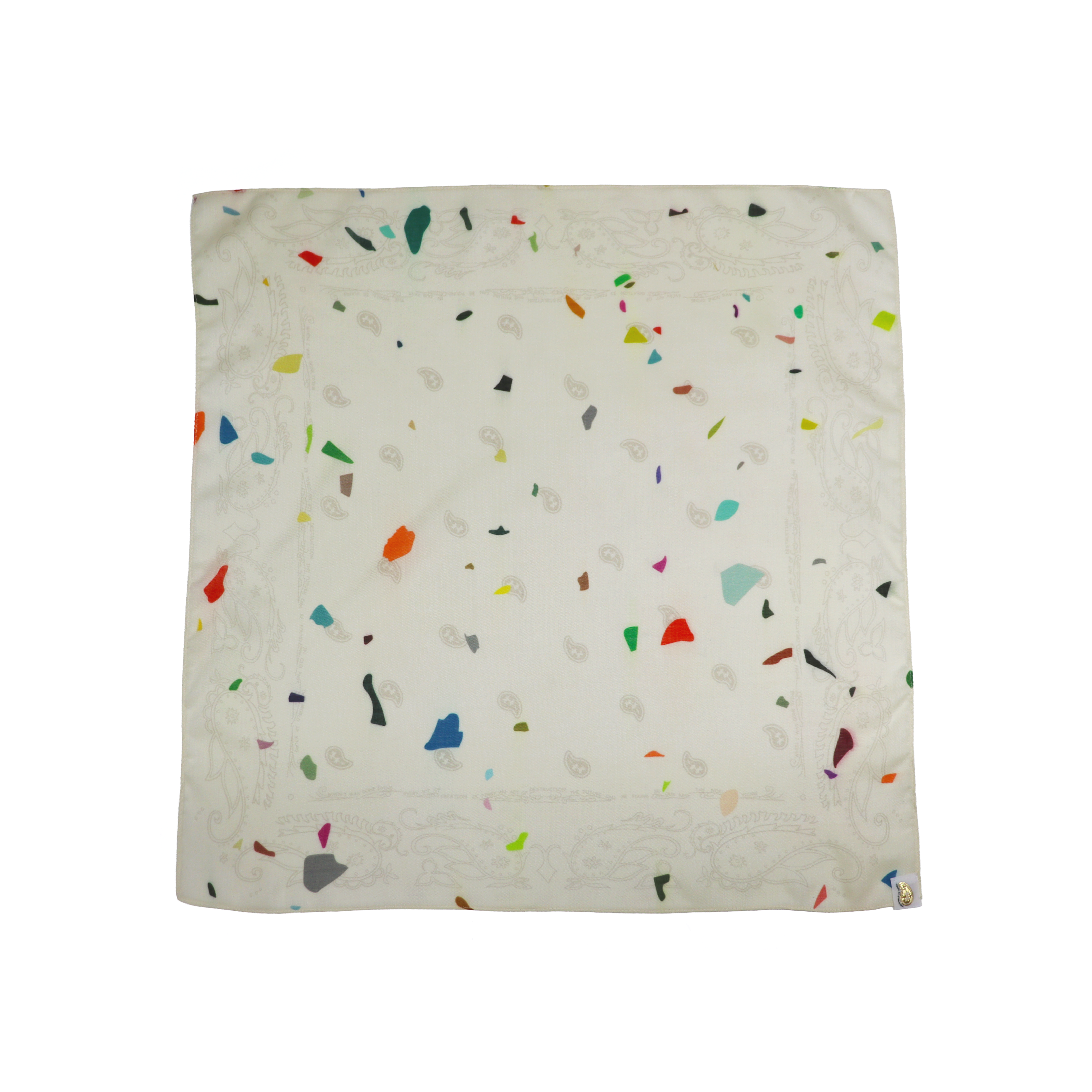 シルクのなめらかな肌触りとウールの温かみを兼ね備えた上質なバンダナ。首元に巻いたり、バッグのアクセントとして使用したりと、シーズンを問わずユニセックスで幅広く活躍する1枚。